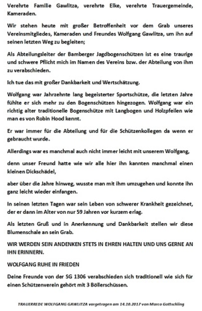 Beisetzung von unserem Freund und Wolfgang Gawlitza